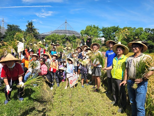 發布日期:夏日到來,六堆客家文化園區田園地景區金黃稻穗隨風飄逸,傳遞今年將是稻穀豐收的一年,4個月前數百名大小朋友捲起褲管踏進泥田裡,不畏辛勞彎腰將手中那株珍貴的水稻秧苗植入泥土中,感受六堆客庄早期最重要的水稻農事工作,從中體認到每一粒稻米自無到有的辛勞,如今在土地所給予的稻穀豐收恩惠下,今(22)日再次邀請2百位大小朋友以行動參與來體驗豐收的喜悅。